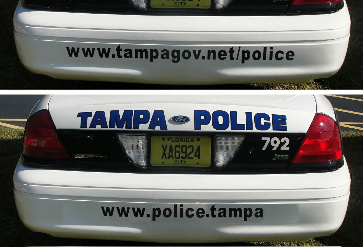 Each Tampa Police Department cruiser has a bumper sticker 'www.tampagov.net/police'; but few citizens remember this URL!